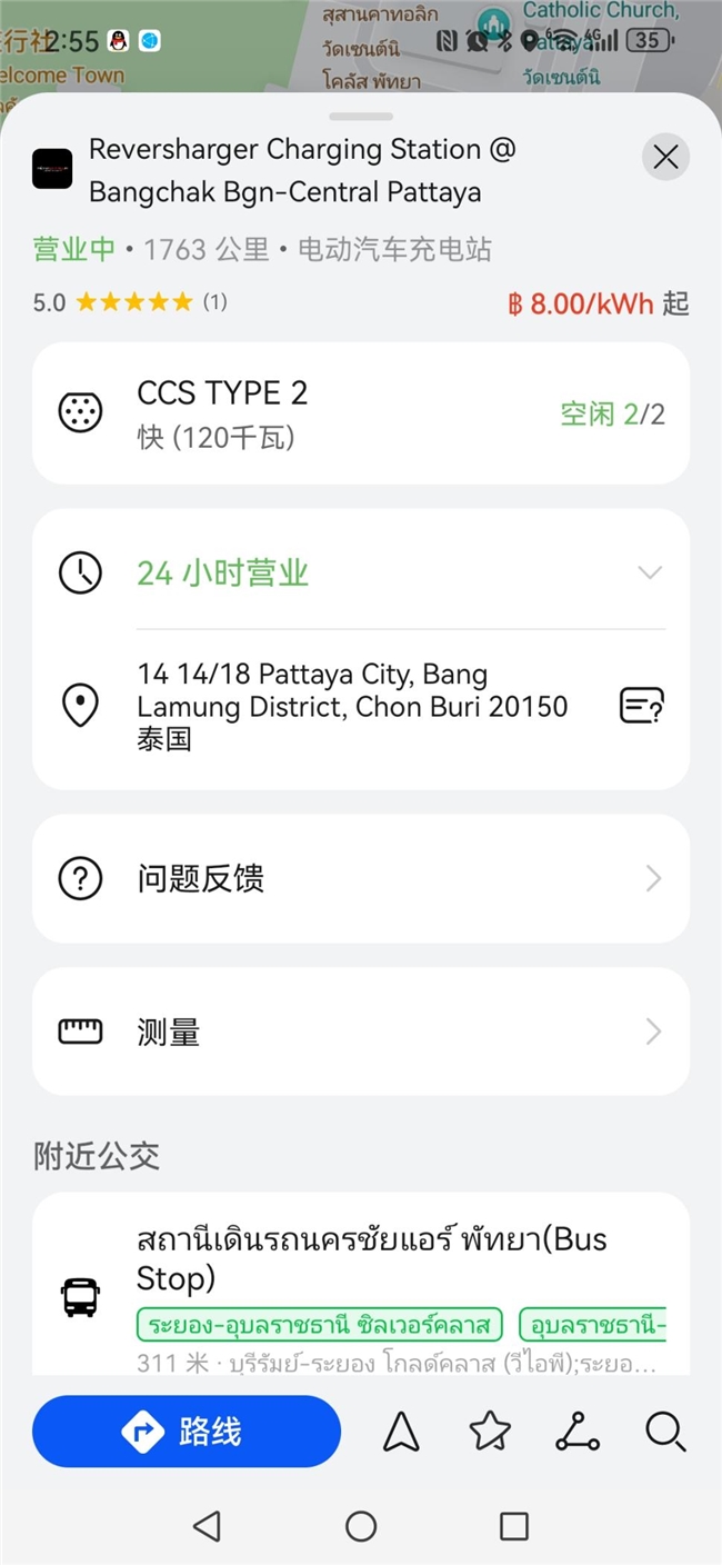 落地曼谷取车后,花瓣地图的实战考验正式开始。在市区逛完大皇宫准备前往芭堤雅时,仪表盘提示电量不足,我立刻打开 APP 搜索附近充电桩。屏幕上密集的绿红点瞬间安抚了焦虑 —— 绿色代表空闲,红色显示占用,距离和导航时间清晰标注。选择了距离最近的充电站,跟着导航 15 分钟就抵达目的地,现场状态和地图显示完全一致:3 个快充桩中有 2 个空闲。更省心的是,充电费用直接以人民币标注,无需换算汇率,扫码即可充电,全程不用接触泰语界面。旁边一位自驾的中国游客看到后直呼羡慕,说自己前一天换了三个 APP 才找到可用的充电桩。