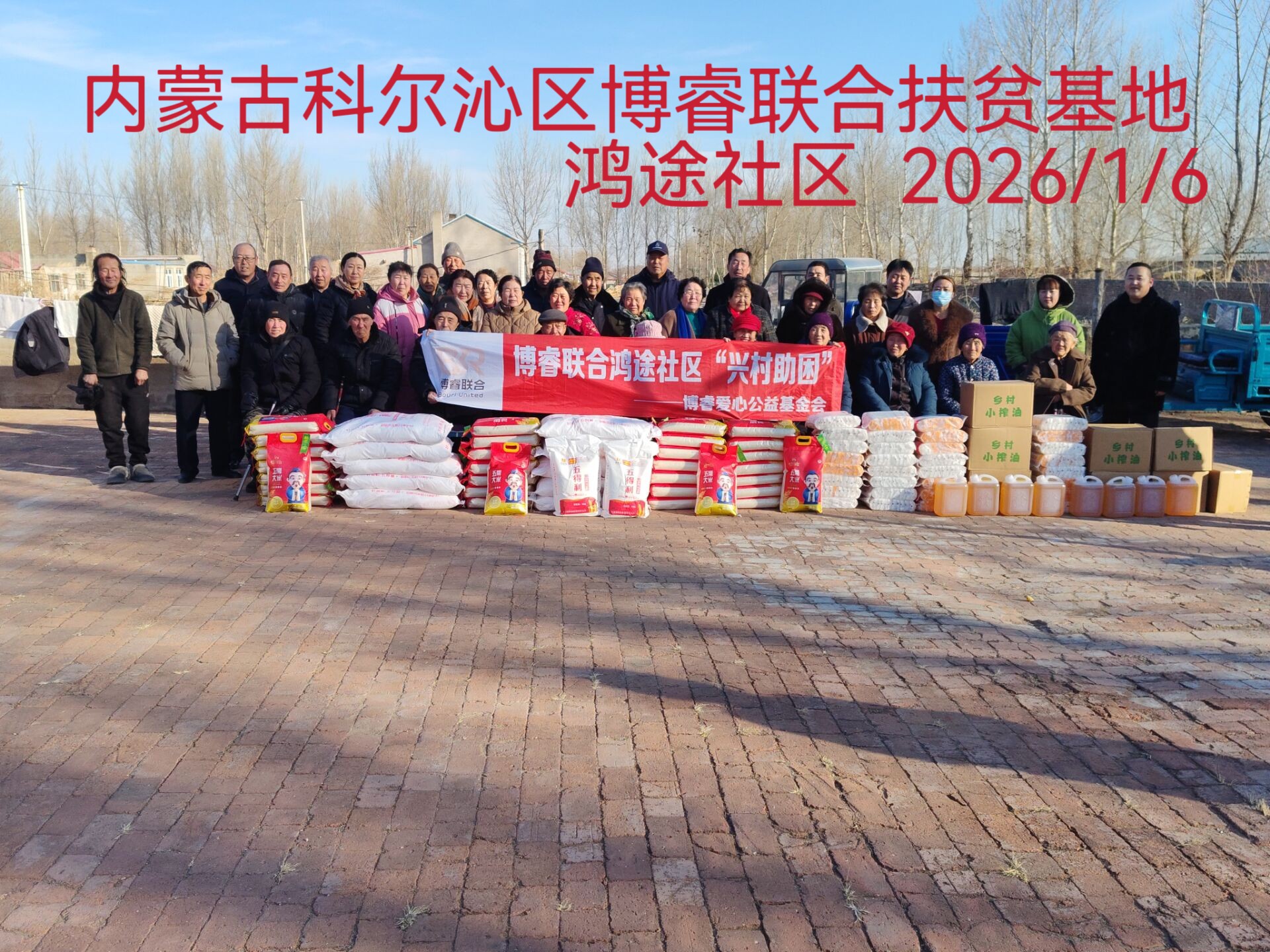 2026年1月6日,内蒙古通辽市科尔沁区博睿联合扶贫基地携手鸿途社区,组织“兴村助困”爱心团队深入当地乡村,为孤寡老人、贫困户及低保户送去冬日关怀。活动以“弘扬传统美德、巩固脱贫成果”为宗旨,通过物资捐赠与情感陪伴,让困难群众感受到社会大家庭的温暖。