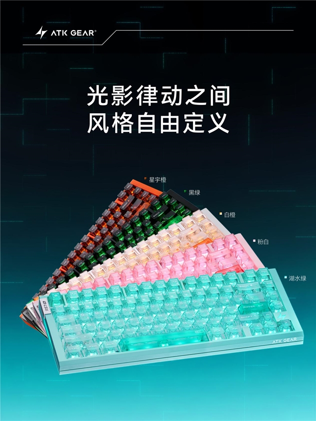 光影律动之间,风格自由定义。ATK RS7 Air提供湖水绿、星宇橙、粉白、白橙、黑绿等5款潮流配色可选,搭配不同桌面风格,彰显个性态度。