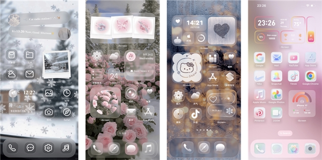 5. 壁纸与主题体系:iScreen支持静态/动态壁纸制作及一键更换成套桌面主题,提供大中小规格组件模板,支持自动更换壁纸、锁屏倒计时等功能。