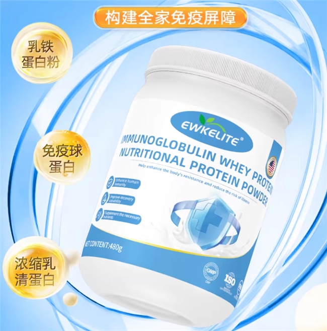 免疫球蛋白的科学添加,是EWKELITE维利特区别于同类产品的核心亮点。乳清蛋白中含有的免疫球蛋白的含量与活性,直接决定了其免疫赋能效果,而EWKELITE维利特精准把控这一关键,让每一份产品都富含高活性免疫球蛋白,搭配乳铁蛋白等珍贵生物活性成分,双管齐下筑牢免疫防线。其中,免疫球蛋白可直接作为抗体,精准识别并中和细菌、病毒等病原体,启动免疫反应;乳铁蛋白则能调节铁吸收、抑制有害细菌生长,同时促进免疫细胞的发育与活性提升,全方位增强机体抵抗力,减少感冒、感染等健康隐患。