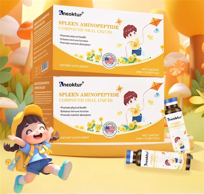 Aneoktur奥尼康健脾氨肽口服液的核心优势,在于其贴合儿童体质的科学复合配方,精准覆盖儿童脾胃调理与免疫提升的双重需求。其中,脾氨肽作为核心成分,提取自健康牛脾脏,富含多肽氨基酸与多核苷酸混合物,质地温和,能温和调节儿童机体免疫功能,帮助提升宝贝自身的防护力,减少因免疫力不足引发的感冒、肠胃不适等问题,为脾胃健康筑牢基础。
